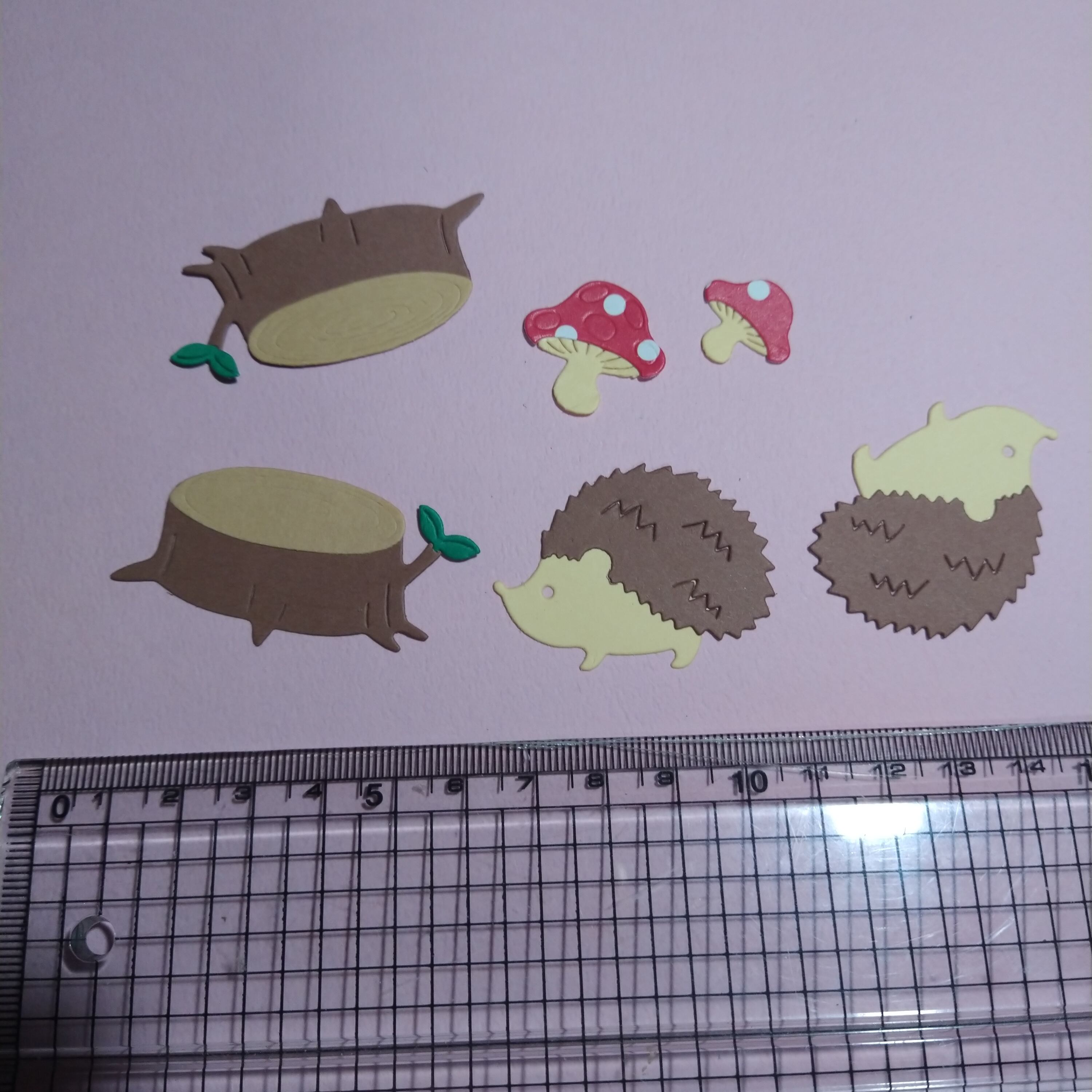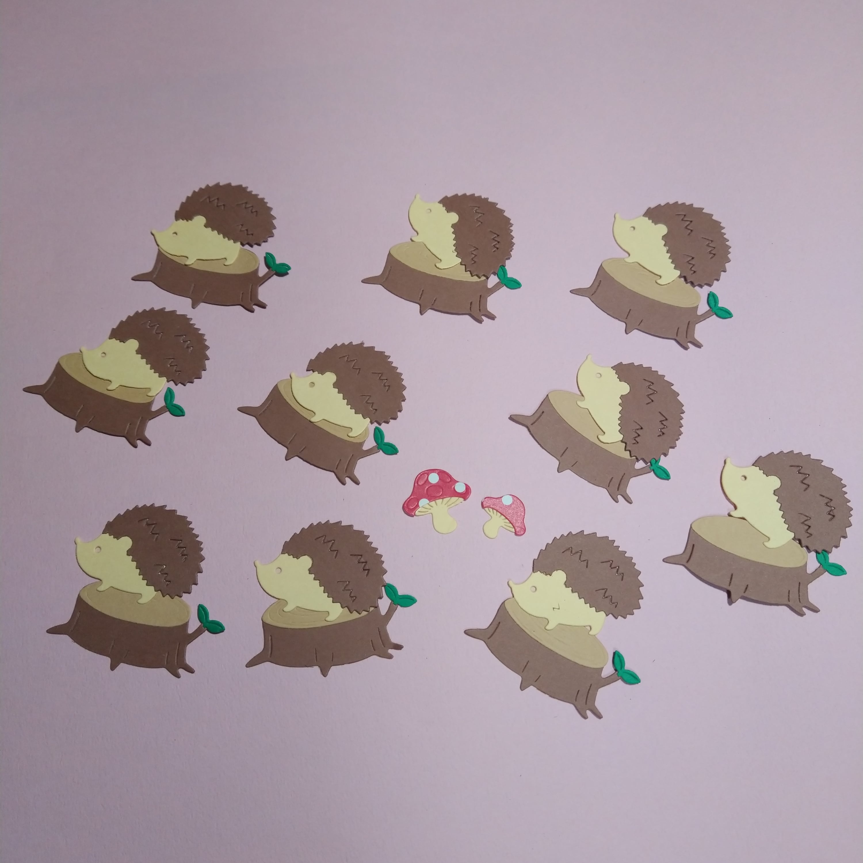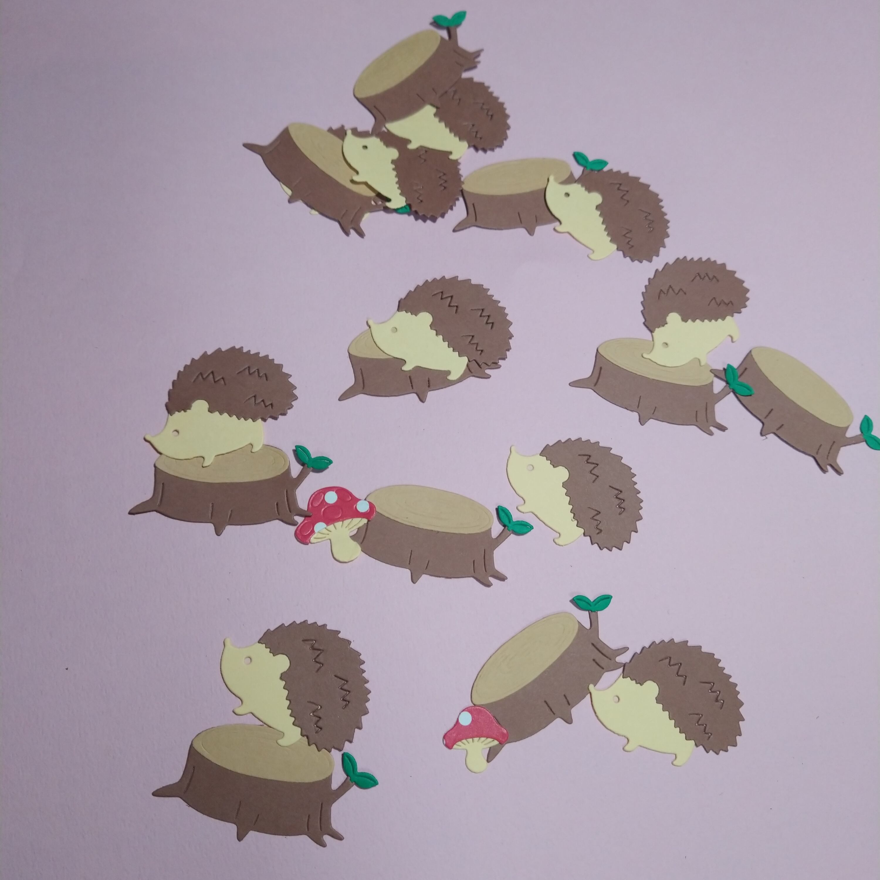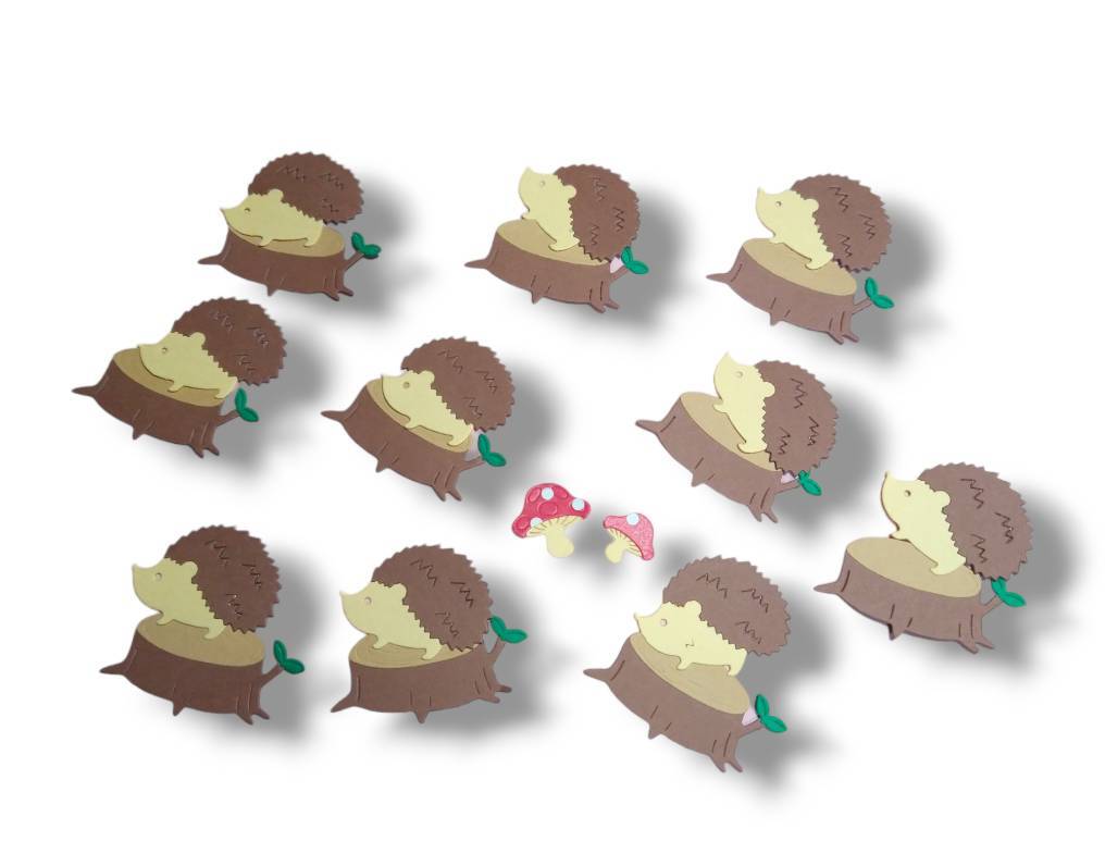 ダイカット 秋 ハリネズミと切り株 クラフトパンチ アルバム 素材 コラージュ