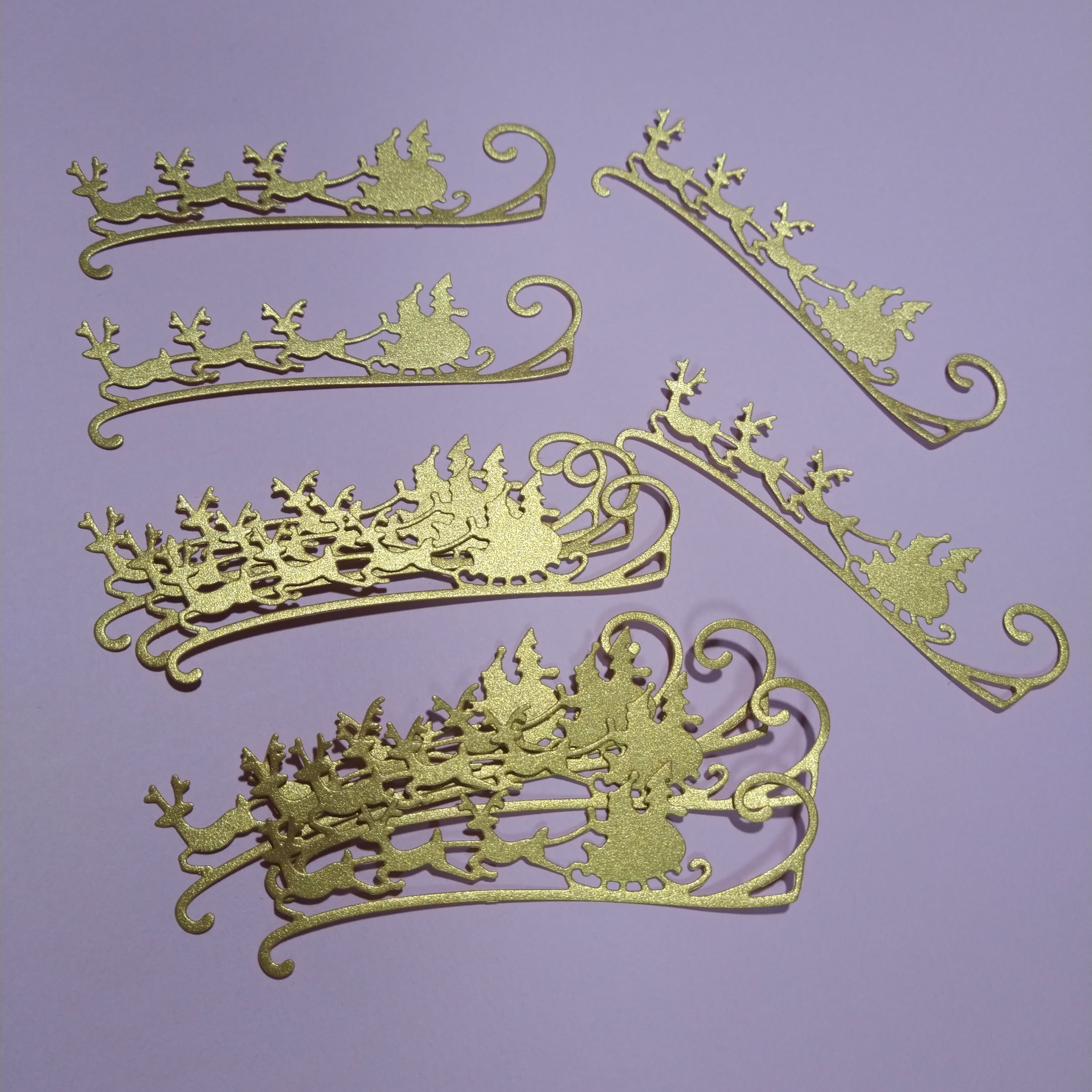 キラキラ輝く黄金のサンタクロースとトナカイ(背景の台紙は除く)
