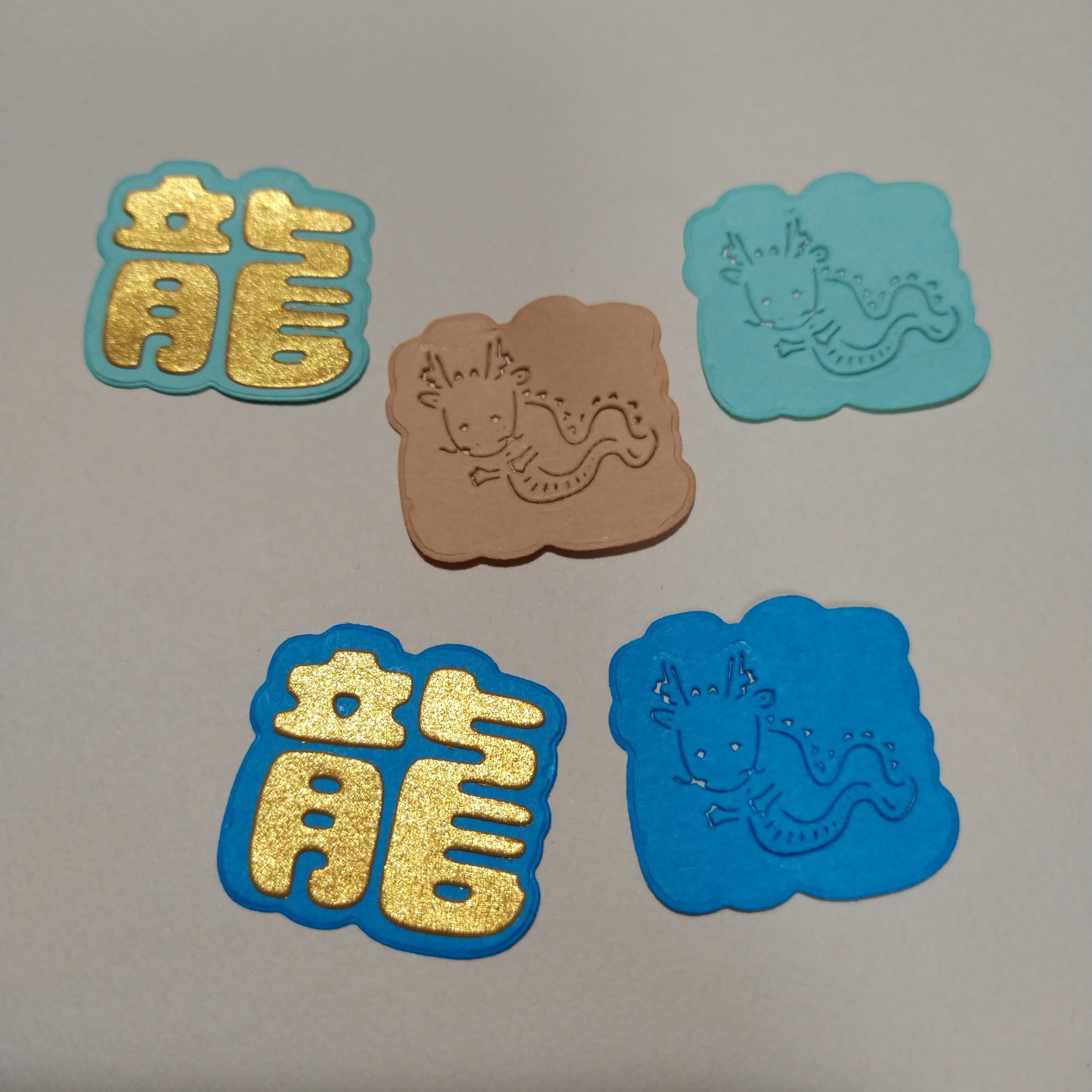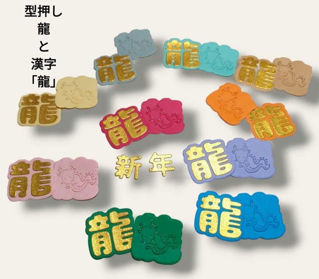 ダイカット 型押し龍 & 「龍」20枚セット パステルカラー アルバムクラフト